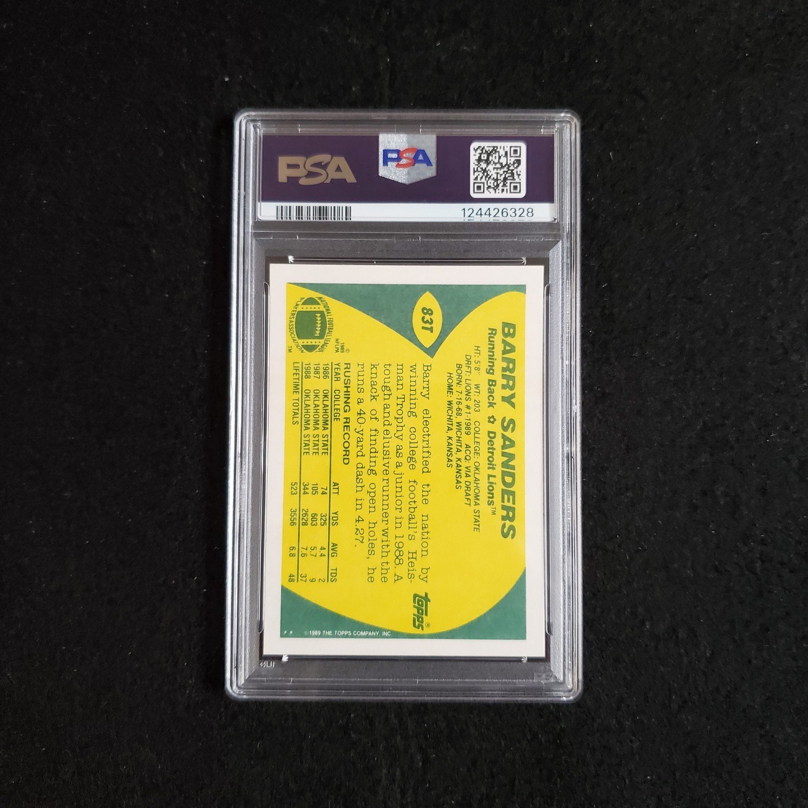 Capture a piece of football history with the 1989 Barry Sanders Topps Rookie card, graded PSA 9 for impeccable quality. This cherished collectible features the Detroit Lions’ legendary running back in his inaugural season, commemorating his exceptional entry into the National Football League (NFL).