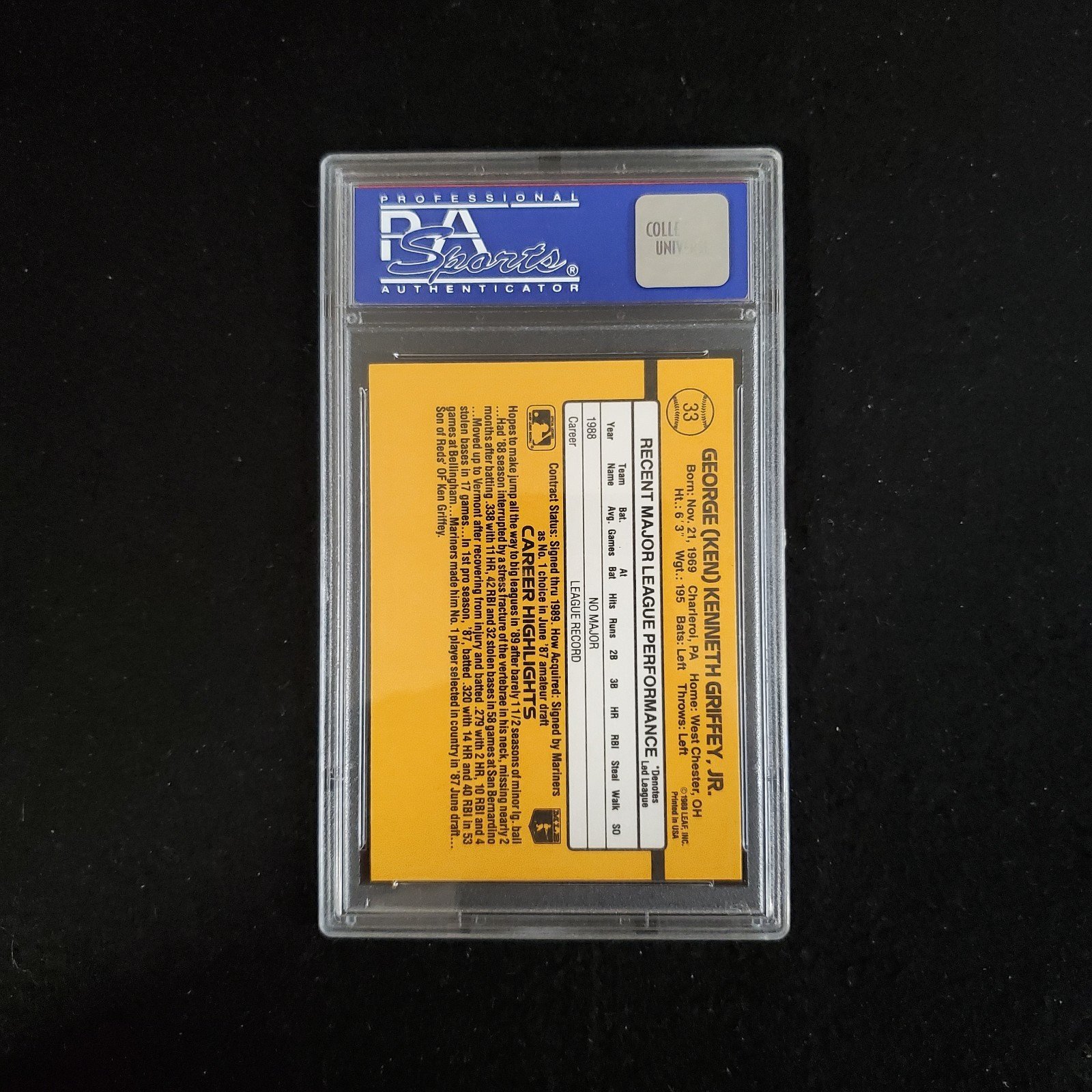Crafted in the United States, this card is a must-have for enthusiasts of the sport and collectors alike. As a part of the classic 1989 Donruss set, it features the coveted base design and is a proud representation of Griffey’s entry into the Major League Baseball scene.