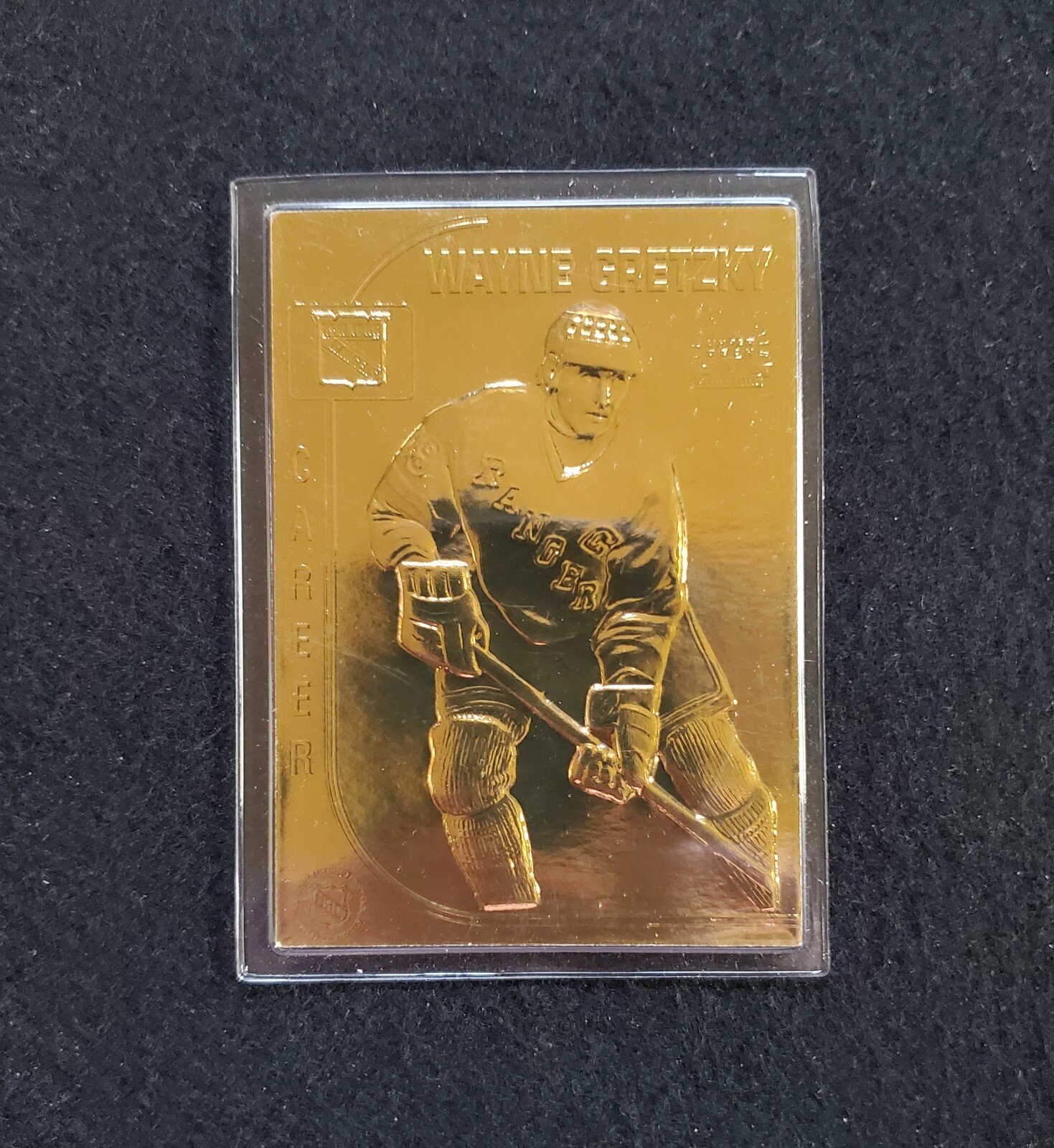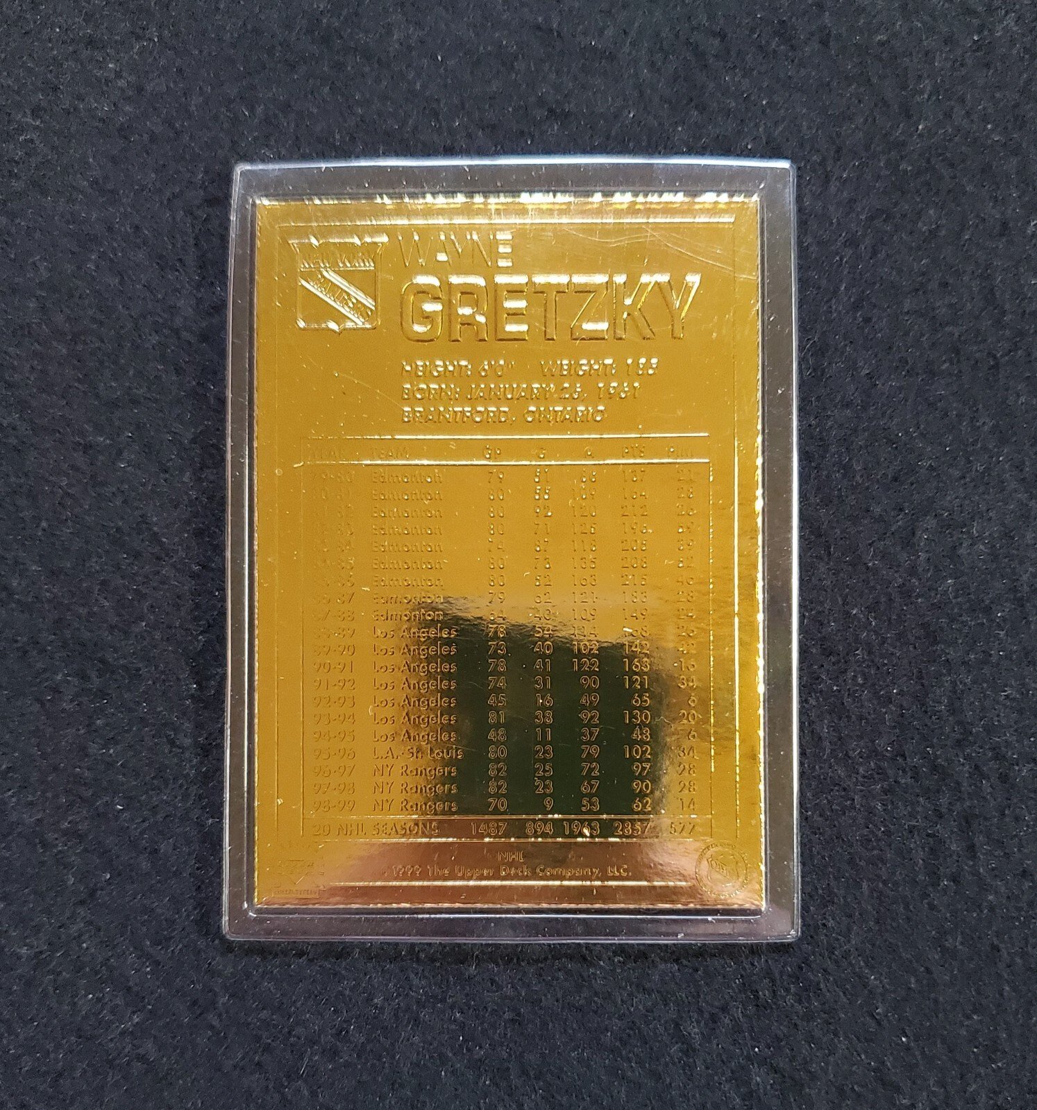 Capture a piece of ice hockey history with the 1999 Wayne Gretzky Upper Deck Authenticated 22K Gold Career Sealed sports trading card. Celebrating the legacy of the Great One himself, this card is a must-have for enthusiasts and collectors alike. Featuring a stunning gold parallel design, it represents a truly iconic addition to any collection.