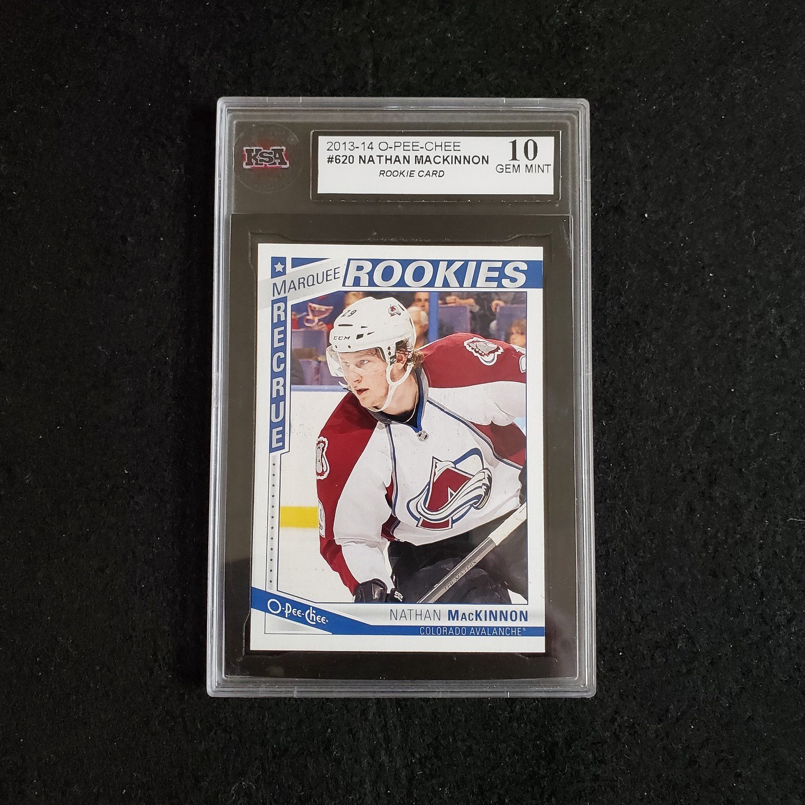 Capture a piece of ice hockey history with this 2013-14 Nathan MacKinnon O-Pee-Chee Rookie card, professionally graded by KSA as a perfect 10. Representing MacKinnon’s inaugural season with the Colorado Avalanche, this card is a must-have for enthusiasts and collectors alike, celebrating the skill and promise of one of the NHL’s shining stars.
