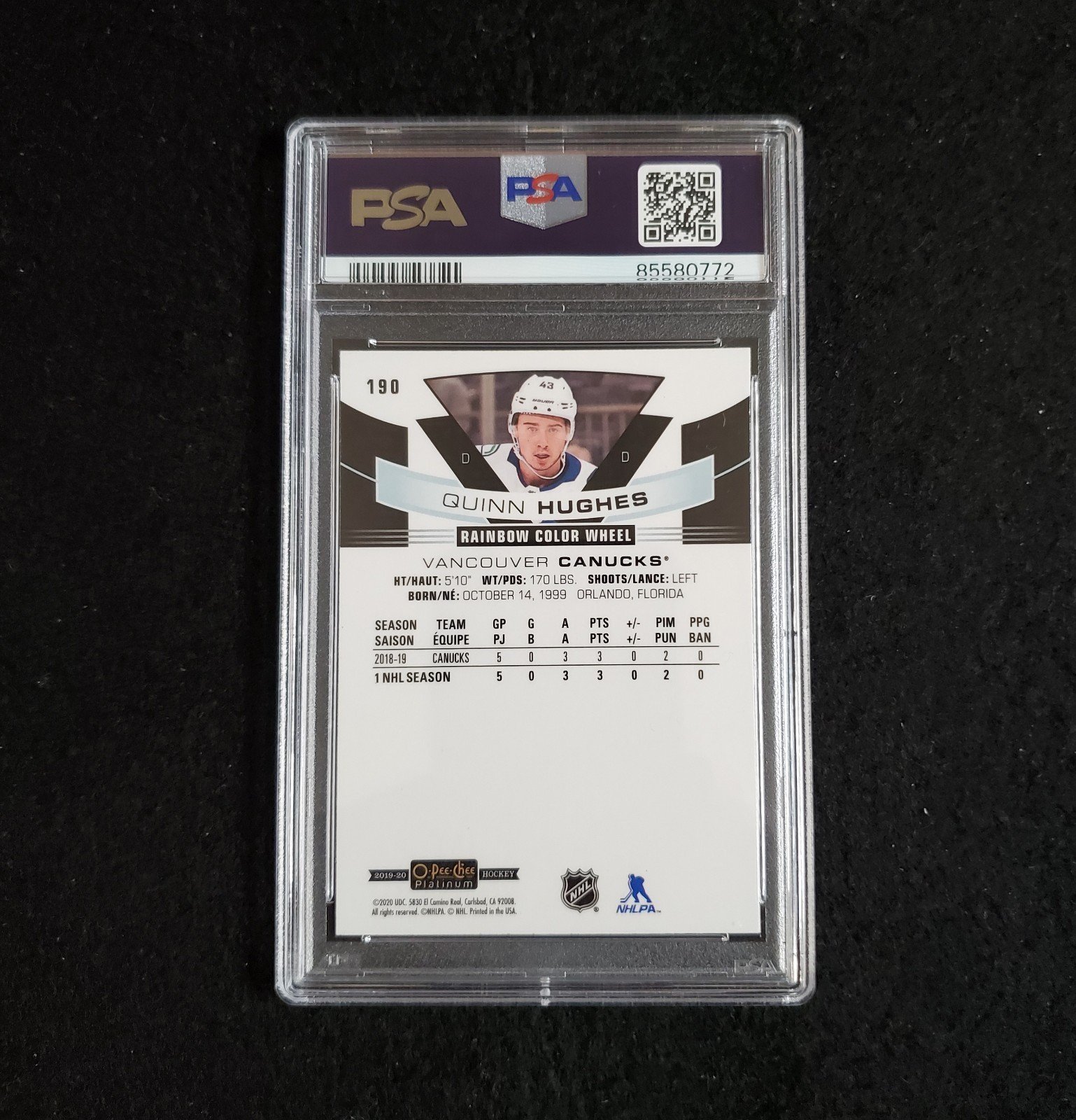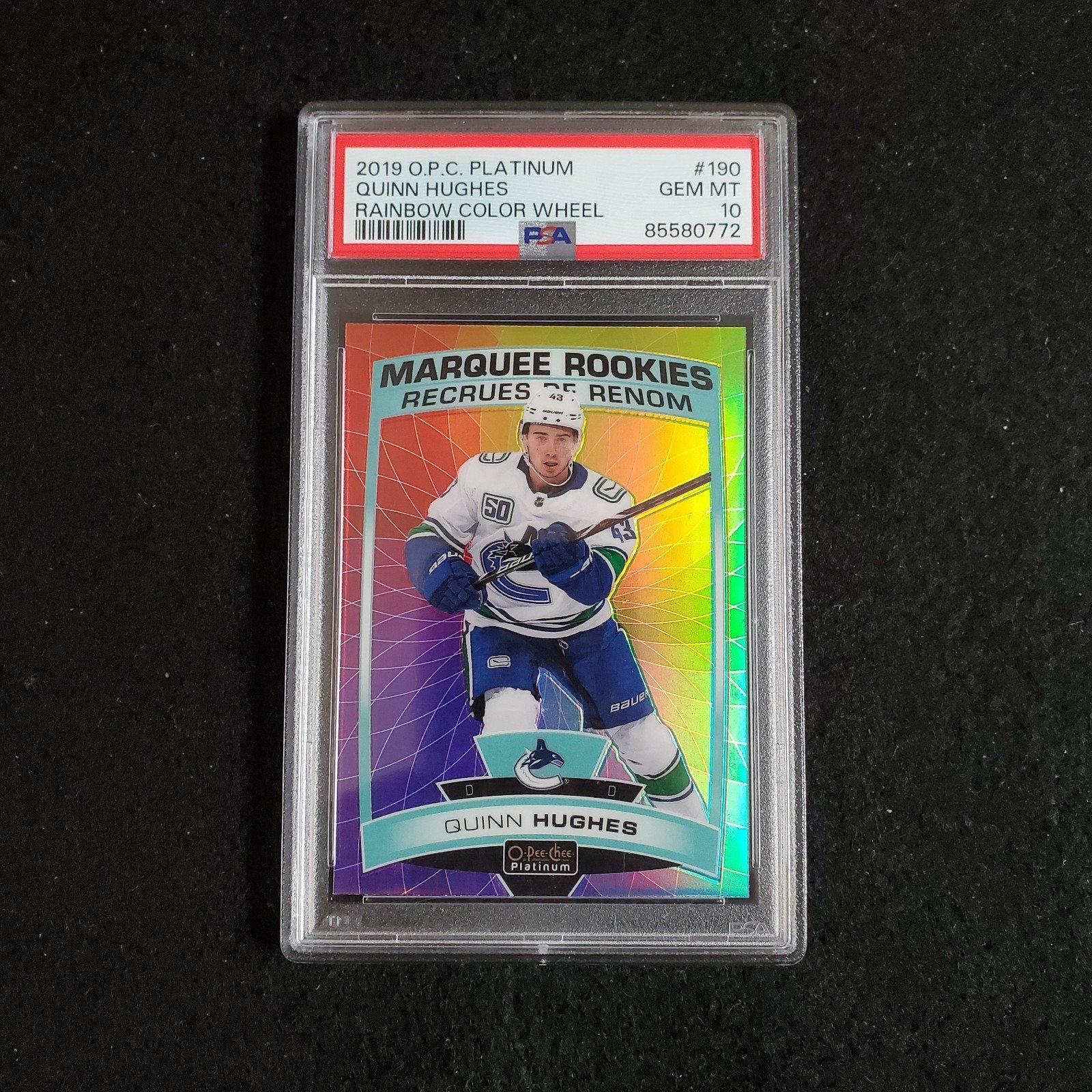 Elevate your hockey card collection with the 2019-20 Quinn Hughes O-Pee-Chee Platinum Rainbow Color Wheel Rookie card, a must-have for fans and collectors alike. Brought to you by Upper Deck, this striking card celebrates the Vancouver Canucks standout in his rookie season, capturing the essence of his dynamic play and potential.