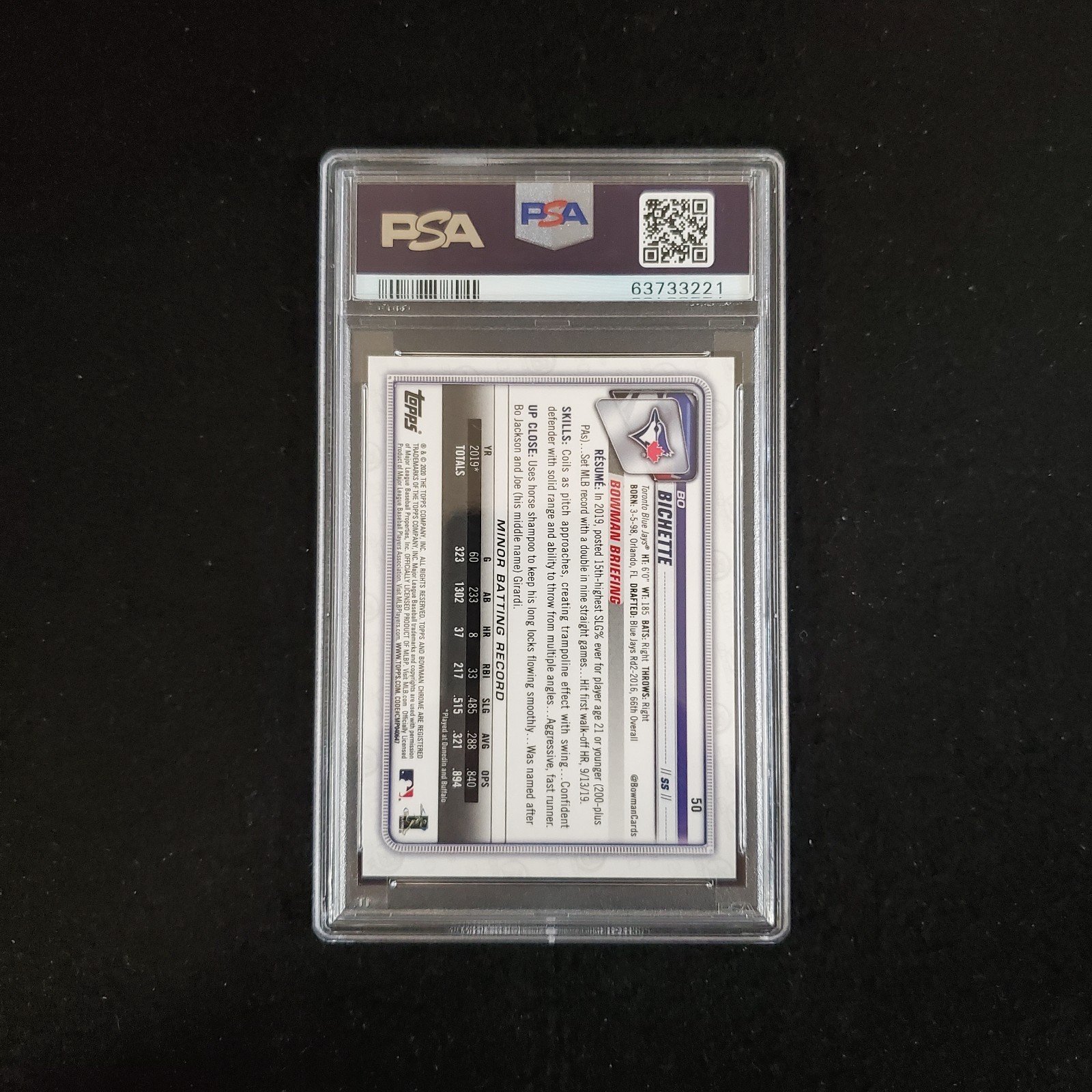 Elevate your collection with the 2020 Bo Bichette Bowman Chrome Rookie card, a Short Print (SSP) variety that has been meticulously graded by PSA to a perfect 10. As a key card from the reputable 2020 Bowman Chrome set, this gem features the Toronto Blue Jays stand-out shortstop in his inaugural MLB season.