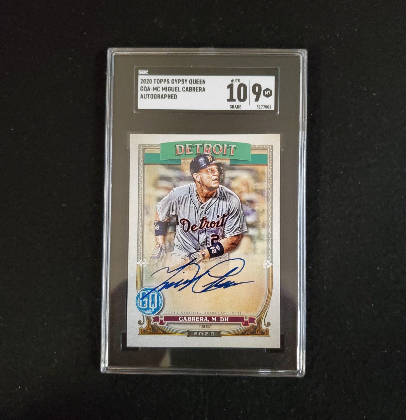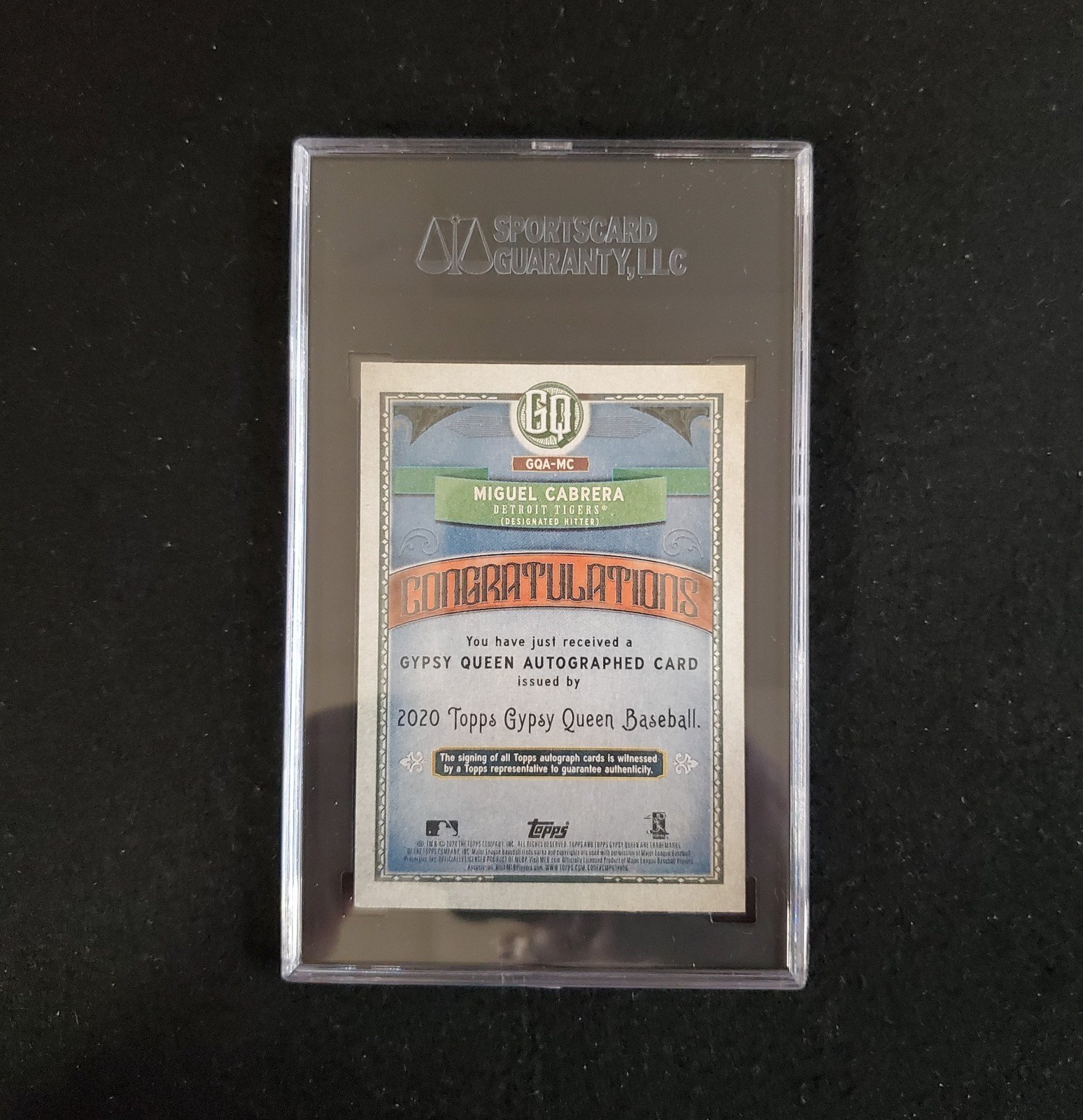 Elevate your baseball memorabilia collection with the 2019 Miguel Cabrera Topps Gypsy Queen Auto card, graded a perfect 10 by Sportscard Guaranty Corporation (SGC). This highly sought-after card features the Detroit Tigers’ superstar and is authenticated and encapsulated by Topps, ensuring its legitimacy and premium quality.