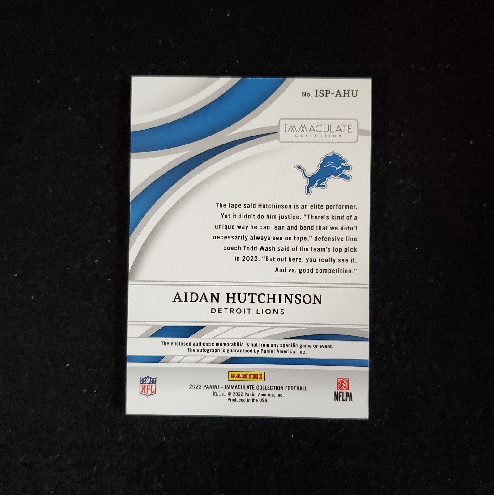 2022 Aidan Hutchinson Panini Immaculate Dual Rookie Patch Auto RPA /99