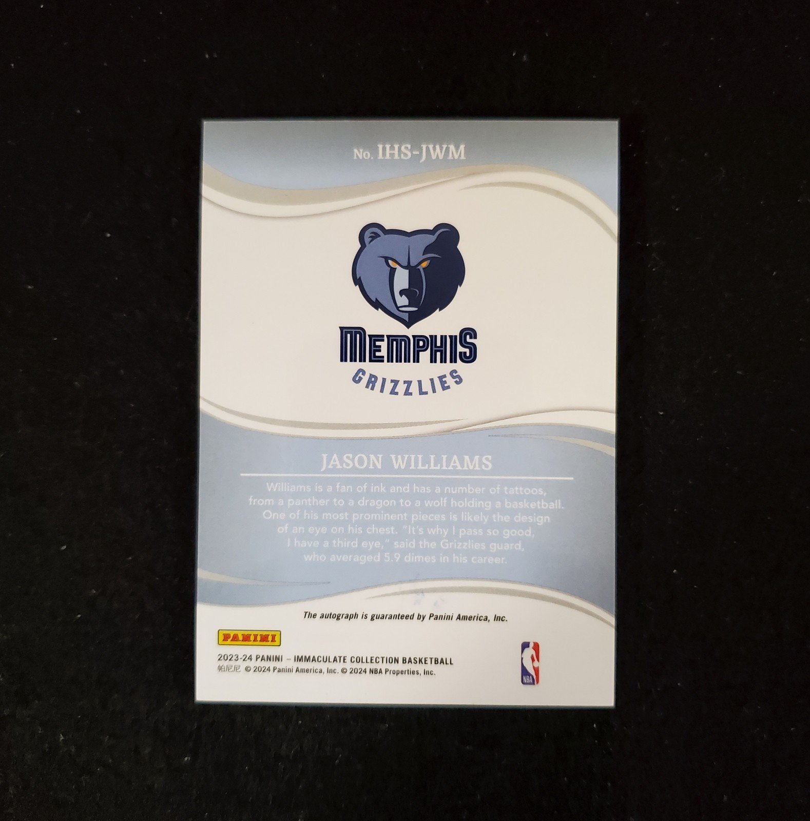 2023-24 Jason Williams Panini Immaculate Heralded Auto /99