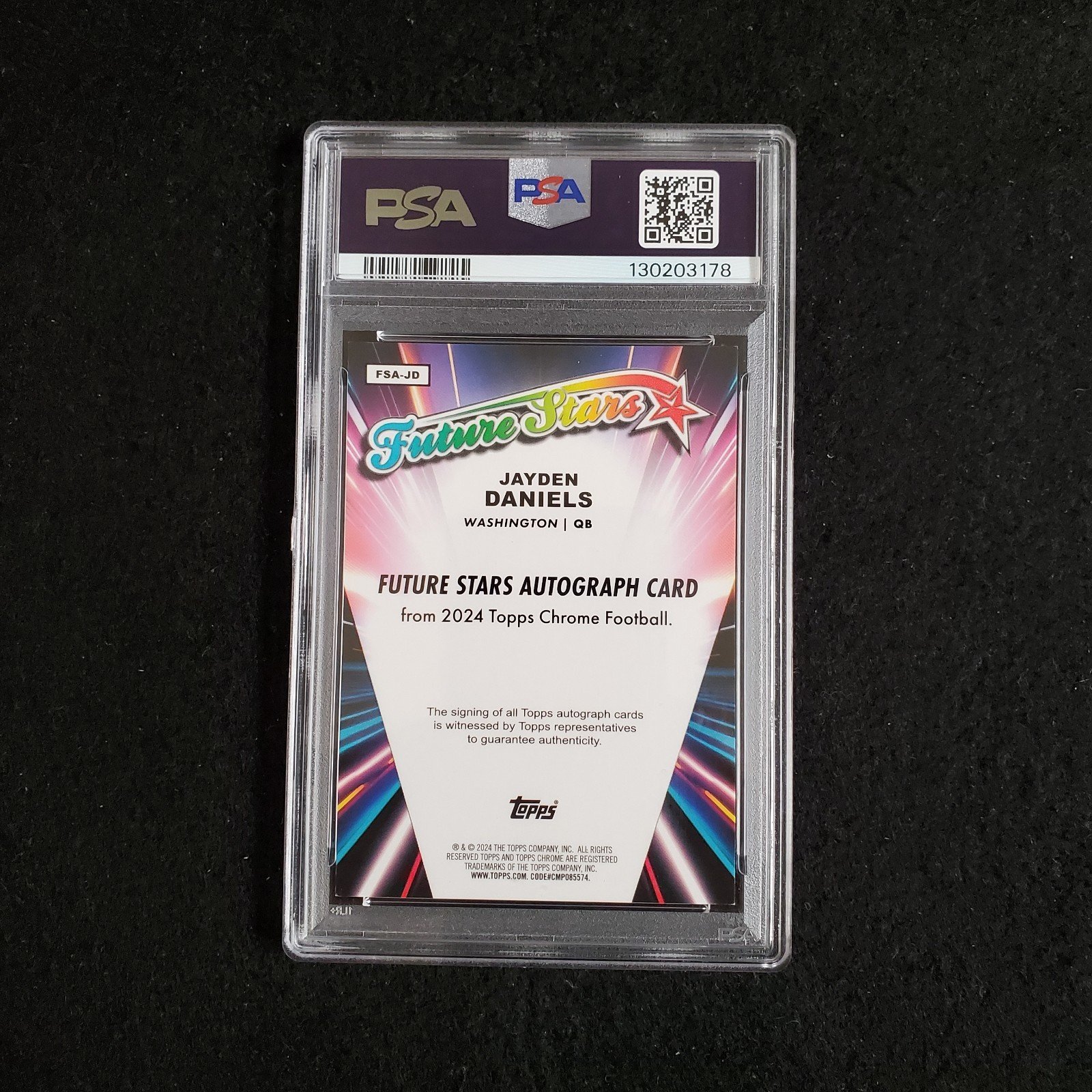 In addition to its visual appeal, the card boasts an authentic autograph from Daniels himself, verified by Topps. With serial numbering, this limited-edition piece is one of only 150 in existence, making it a rare and valuable addition to any National Football League (NFL) memorabilia collection. The card also features an insert design from the reputable 2024 Topps Chrome set, ensuring its place as a coveted collectible for years to come.