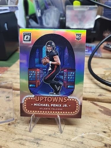 Elevate your football card collection with the 2024 Panini Donruss Optic Michael Penix Jr. Rookie Uptown Case Hit SP, a highly sought-after piece for enthusiasts and collectors alike. This exceptional card showcases the Atlanta Falcons’ promising talent, highlighting his rookie status and the card’s short print feature, making it a unique addition to any collection.
