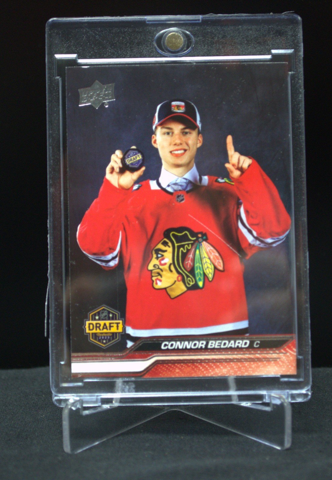 Discover the excitement of adding the Connor Bedard 2023-24 Upper Deck Series 1 Rookie Easter Egg SSP card to your collection. This coveted card, numbered SP-1, features the promising talent of Connor Bedard, adorned with the iconic Chicago Blackhawks logo. It’s a must-have for fans and collectors alike, celebrating a new generation of hockey talent. Crafted with care in Canada, this card captures the spirit of hockey and is part of the renowned National Hockey League (NHL) collection. An original piece from the 2023-24 Upper Deck Series 1 set, it’s not autographed, ensuring the focus remains on the athlete’s potential and the card’s design. With its short print feature, it stands out as a unique addition to any sports memorabilia collection.